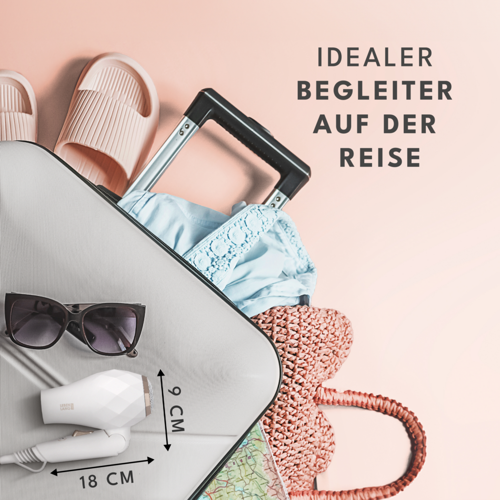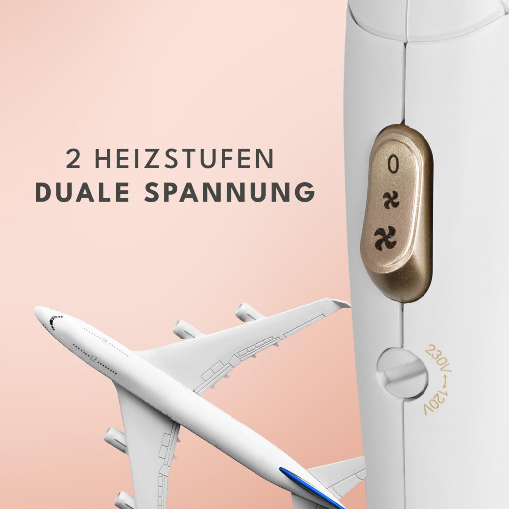 Mit einem schnellen Handgriff ist der Föhn gefaltet und lässt sich platzsparend verstauen oder in die Reisetasche packen. So haben Sie zu Hause und auf Reisen mehr Platz für andere Dinge.